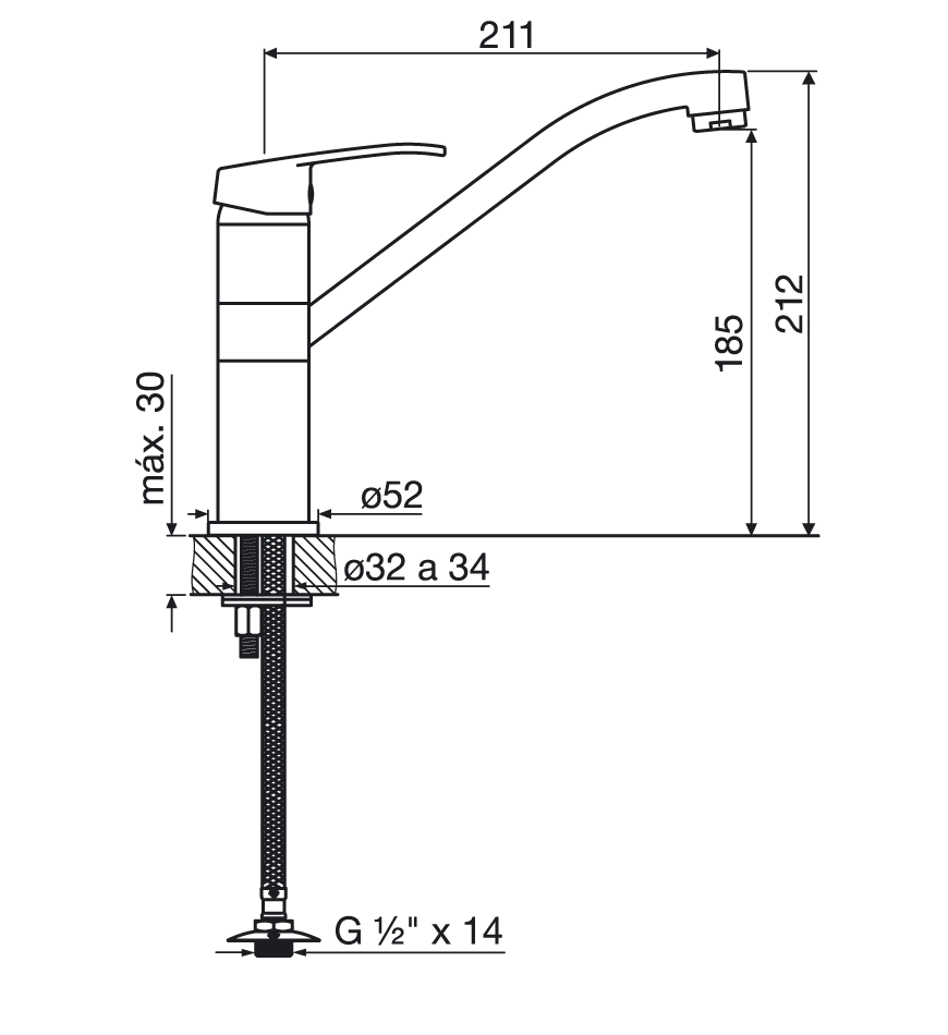 Juego Monocomando alto para mesada de cocina, con pico movil